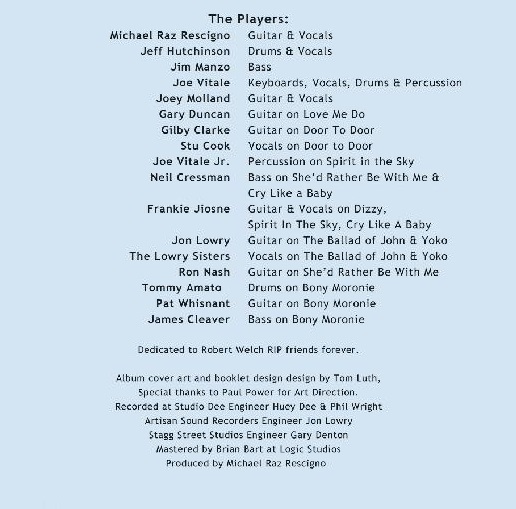 More exceptionally melodic upbeat guitar pop from The Raz Band. These guys have been at it for some time now, but you'd never know it. #9 has a nice fresh sound that should appeal to just about anyone who likes solid catchy guitar pop. The band is comprised of Jim Manzo, Michael "Raz" Rescigno, Joey Molland, and Jeff Hutchinson. The opening track is a real surprise. Featuring vocals by Molland, "Breadline Love" almost sounds like it could be an outtake from Badfinger's No Dice album from the 1970s. These guys aren't playing artsy stuff for the artsy crowd. Their songs are straightforward classic rock...the kinda stuff that most listeners find very appealing. #9 features eleven cool tracks, almost all of which sound like potential hits. The package also contains a bonus disc featuring an additional seven tracks recorded live. Is this a case where a band's time has finally come? It wasn't that long ago that Gonzo Multimedia released a 'best of' that presented an overview of the band's career. So this release is ultimately well-timed and primed for positive reception. Our favorite tracks include "Breadline Love," "I Got This," "Coming At You," "Let Me Tell You," and "Dirt."